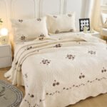Kissenbezug und Klimadecke mit großer runder Stickerei in Cremeweiß
