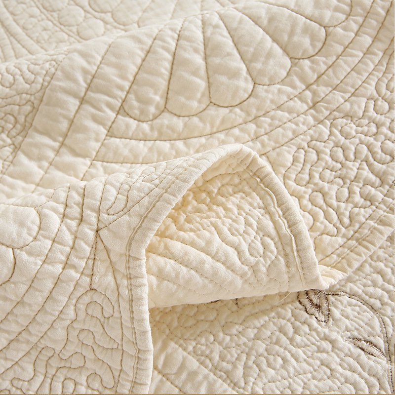 Modernes, minimalistisches Design mit großer, runder Stickerei in Cremeweiß. Feine Steppung, weiches und atmungsaktives Material, ideal für den Sommer und angenehme Temperaturregulierung.